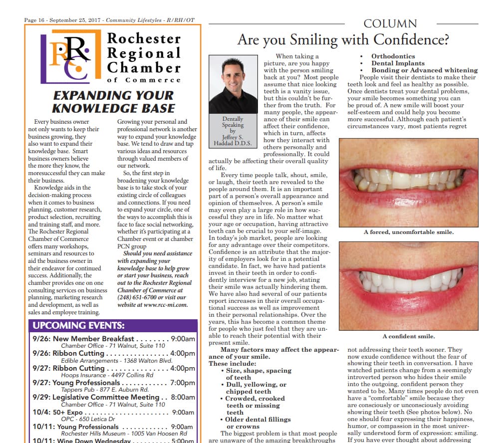 Column by Dr. Haddad titled "Are you Smiling with Confidence?"